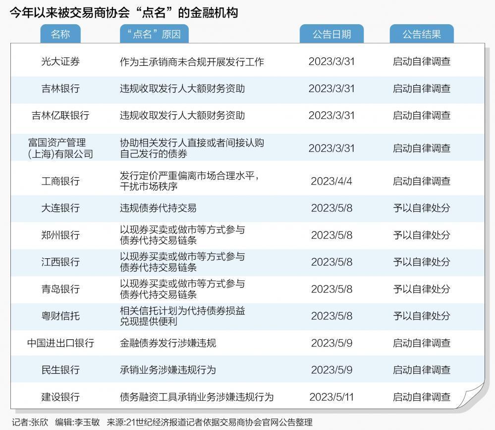 21世纪经济报说念记者依据走动商协会公告梳剃头现,本年于今,共有13家金融机构被走动商协会“点名”,主要问题鸠合在刊行订价严重偏离市阵势理水平,扰乱阛阓步骤、自买自卖、非法代抓、承销业务涉嫌非法等方面。