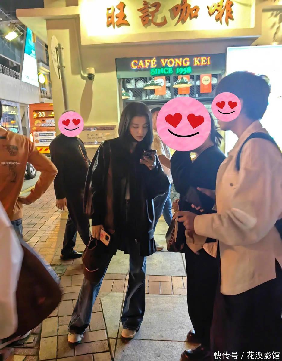 王楚然玄色皮衣搭配牛仔裤酷飒轻松。